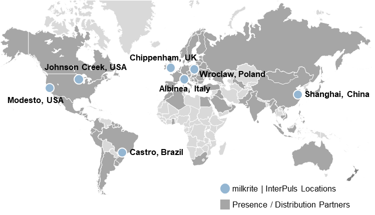 milkrite | InterPuls provides milking point solutions to farmers around the world, with the aim of improving any farm it touches. At milkrite | InterPuls, we have been producing equipment for the dairy industry since 1885. We can therefore boast more than one hundred years of manufacturing experience in the livestock industry.